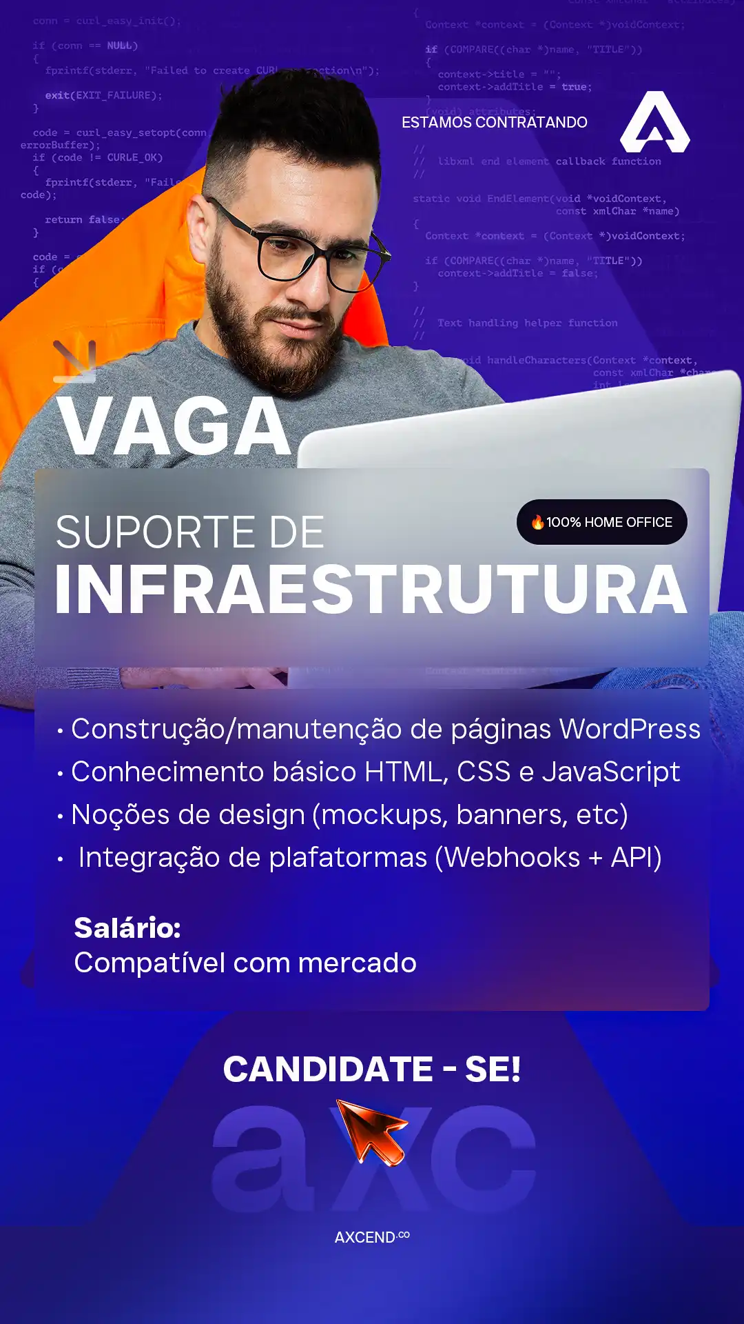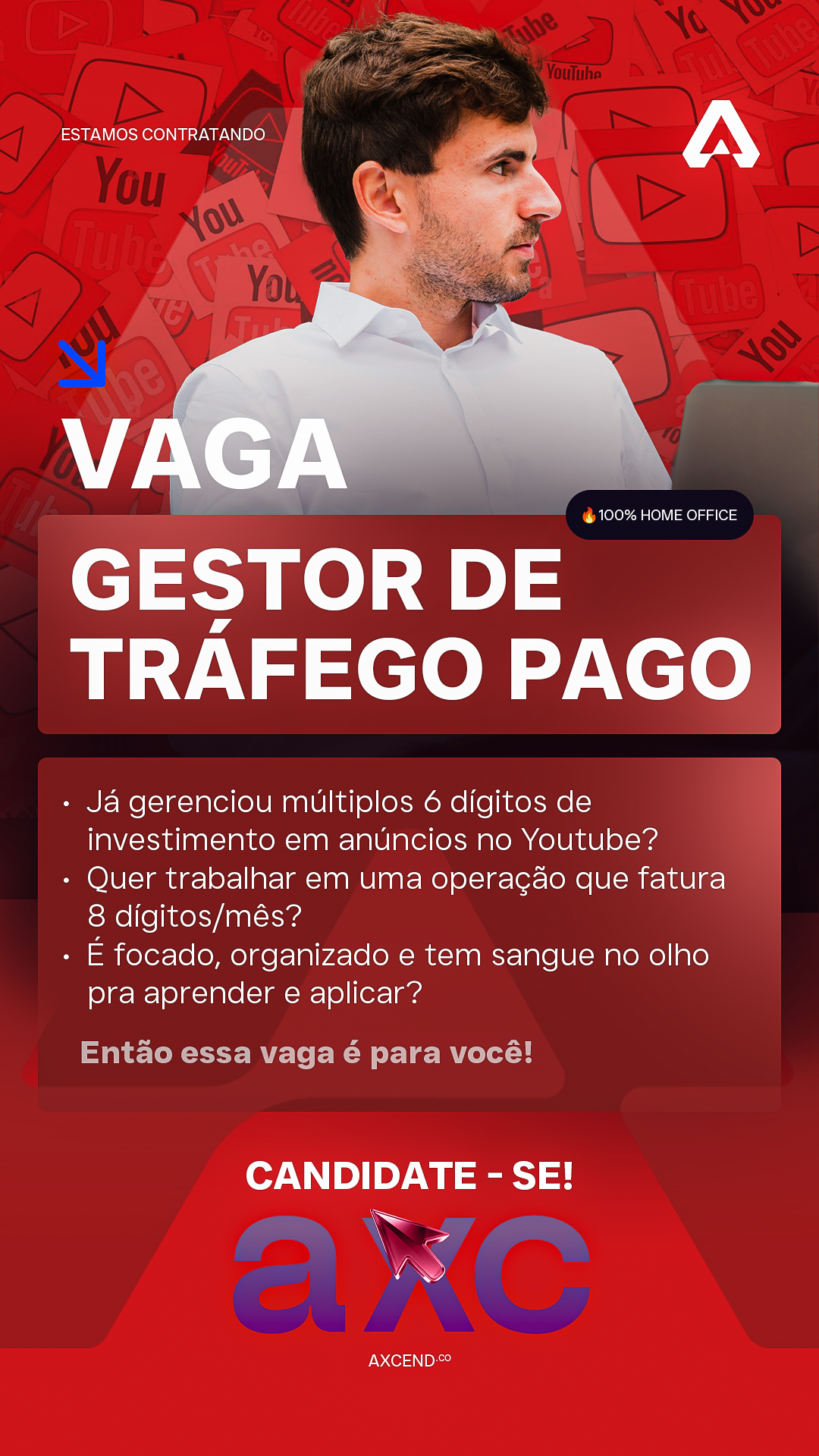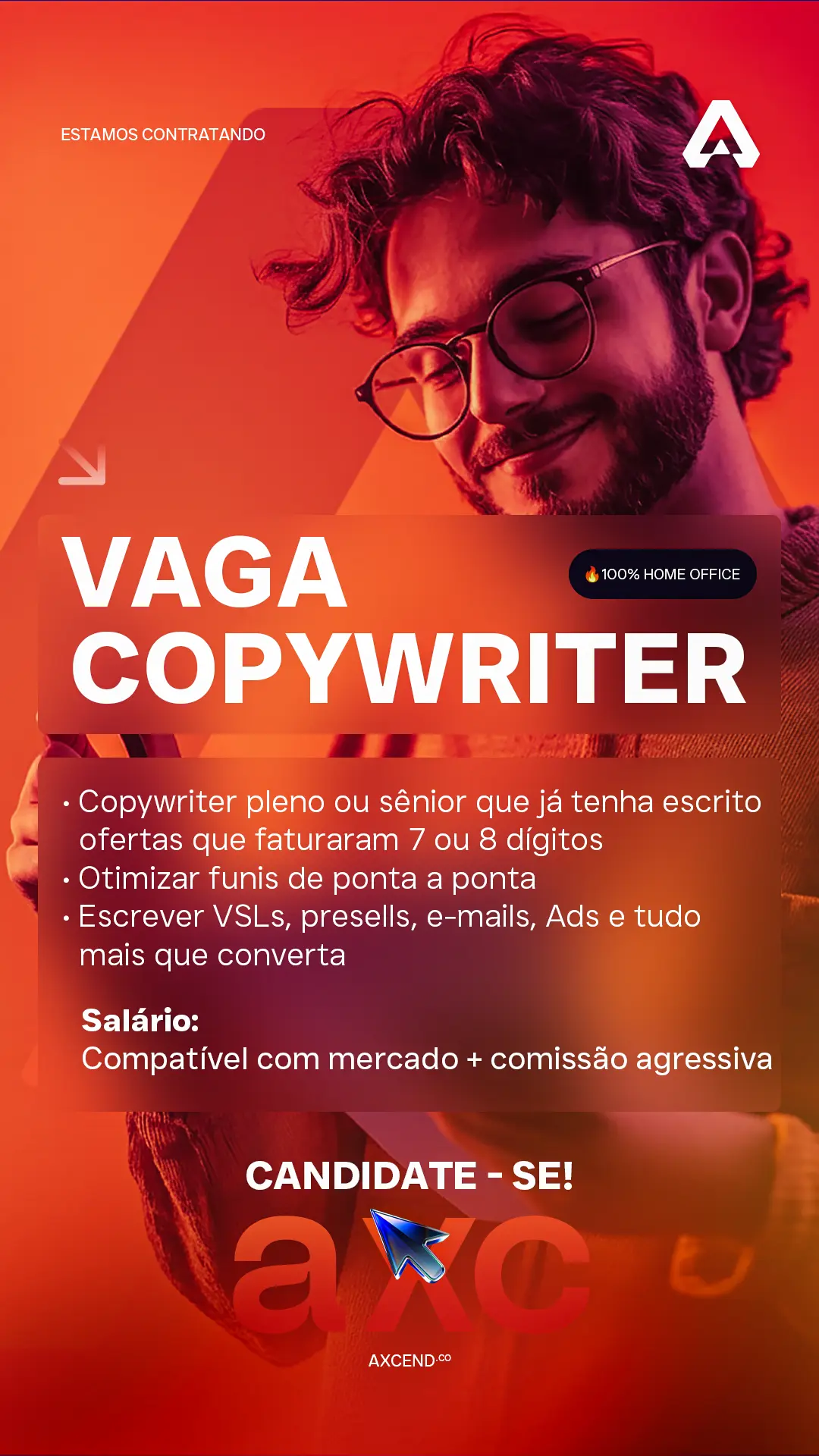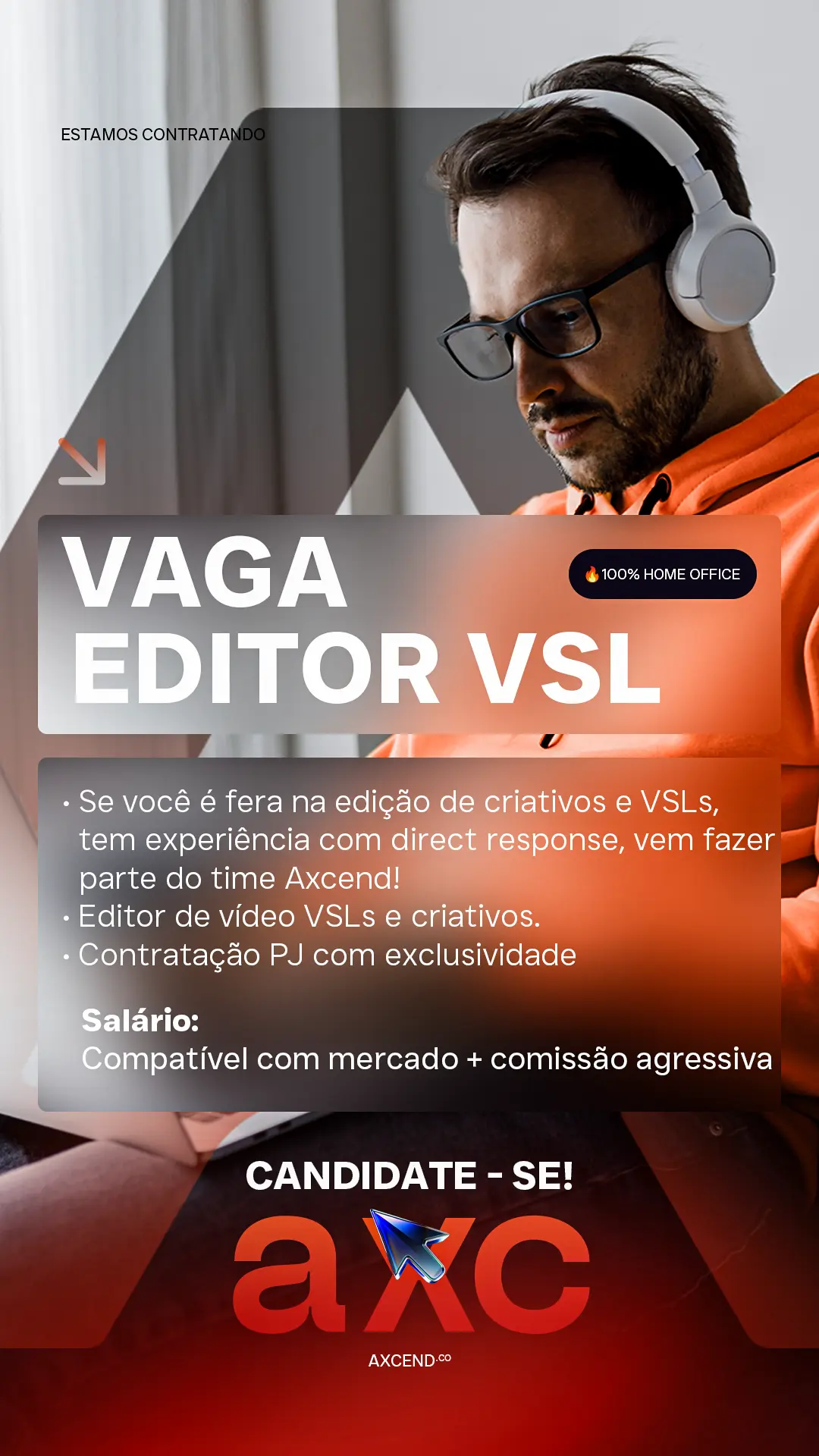 Se você é fera na edição de criativos e VSLs, tem experiência com direct response, vem fazer parte do time Axcend!