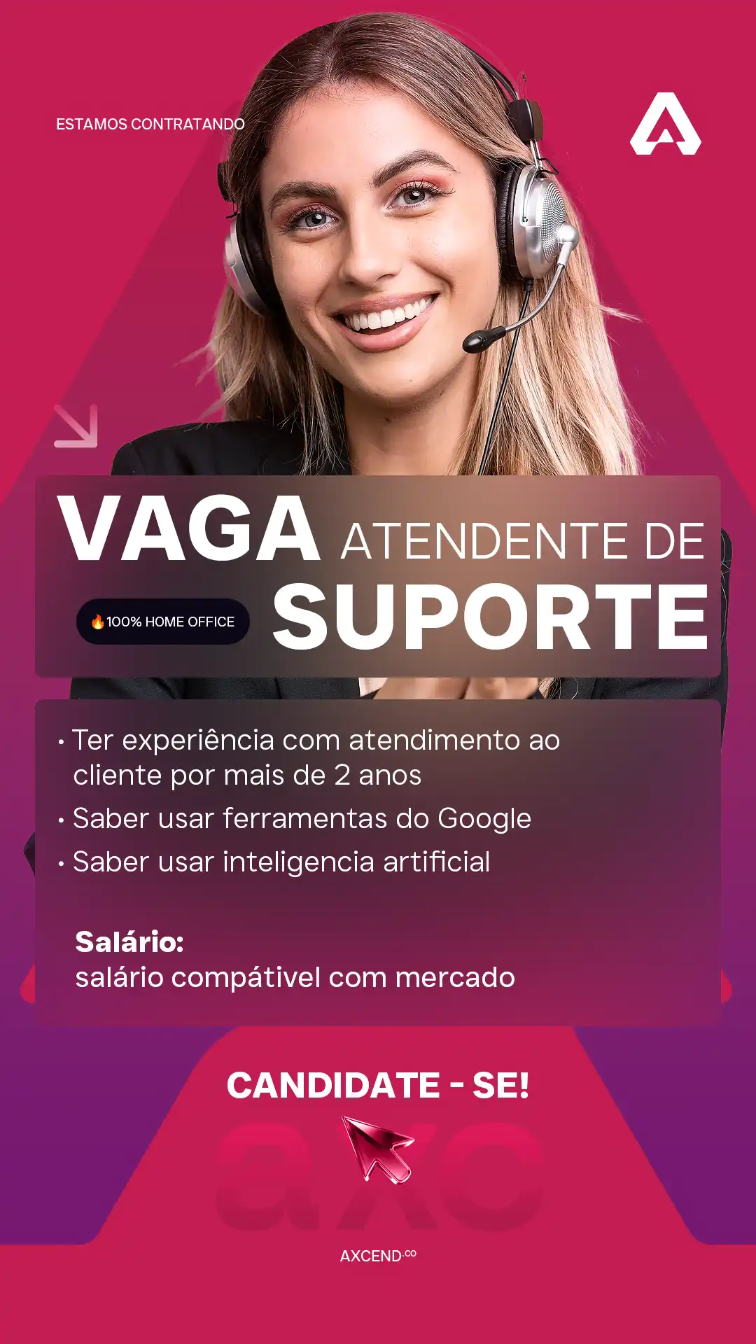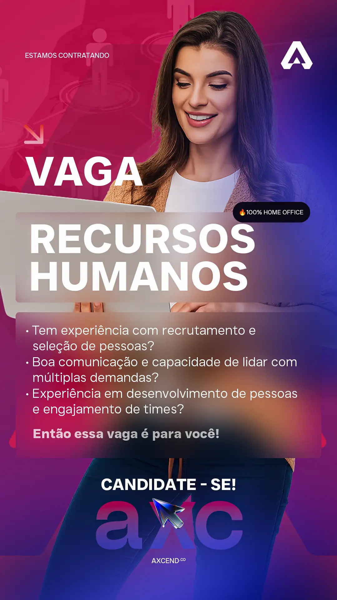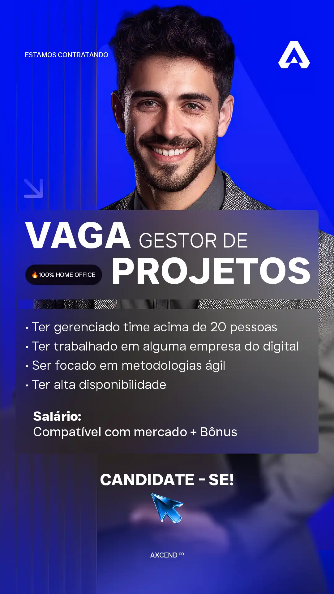 Na AXCEND, buscamos pessoas que não esperam o momento perfeito, elas criam. Que não se contentam em caminhar, porque nasceram para ascender. Se você acredita que resultado é consequência de movimento, junte-se ao time que está redefinindo o Direct Response no mundo.